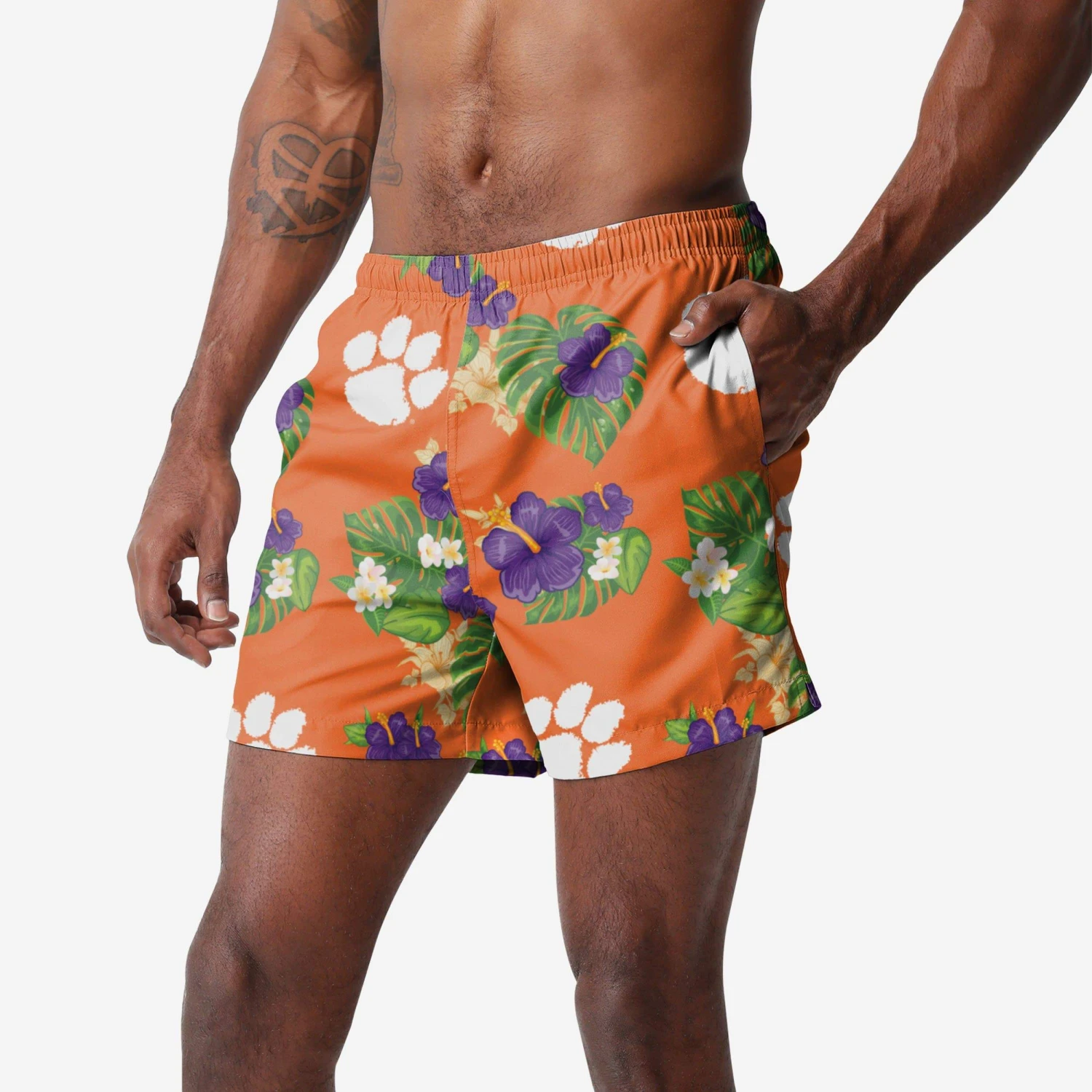 The only thing better than taking a dip in the pool on a hot day is doing so while showing off your one-of-a-kind team spirit. That’s why we made these Clemson Tigers Floral Swimming Trunks.
