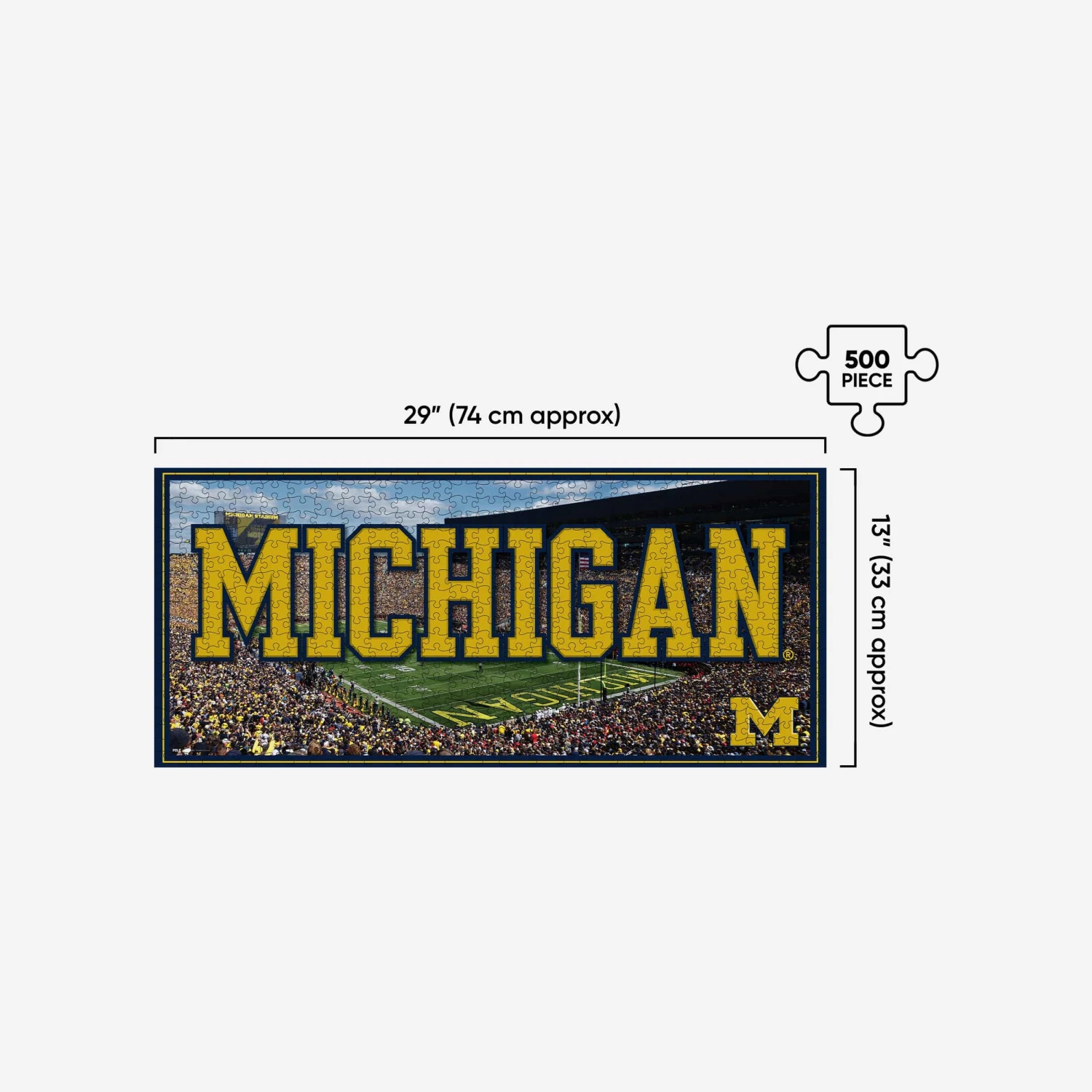 Enjoy the fun of your favorite gameday venue and assemble some home field advantage with this Michigan Wolverines Michigan Stadium 500 Piece Stadiumscape Jigsaw Puzzle PZLZ!