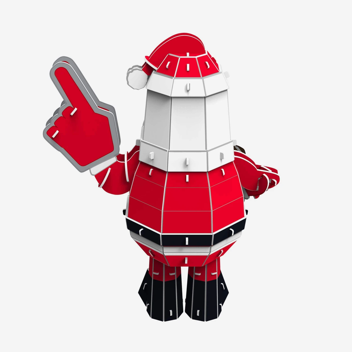 - Team-colored Santa outfit and fan finger with team logo displays on hat, shirt, and fan finger, in case there were any doubts where your allegiances lie