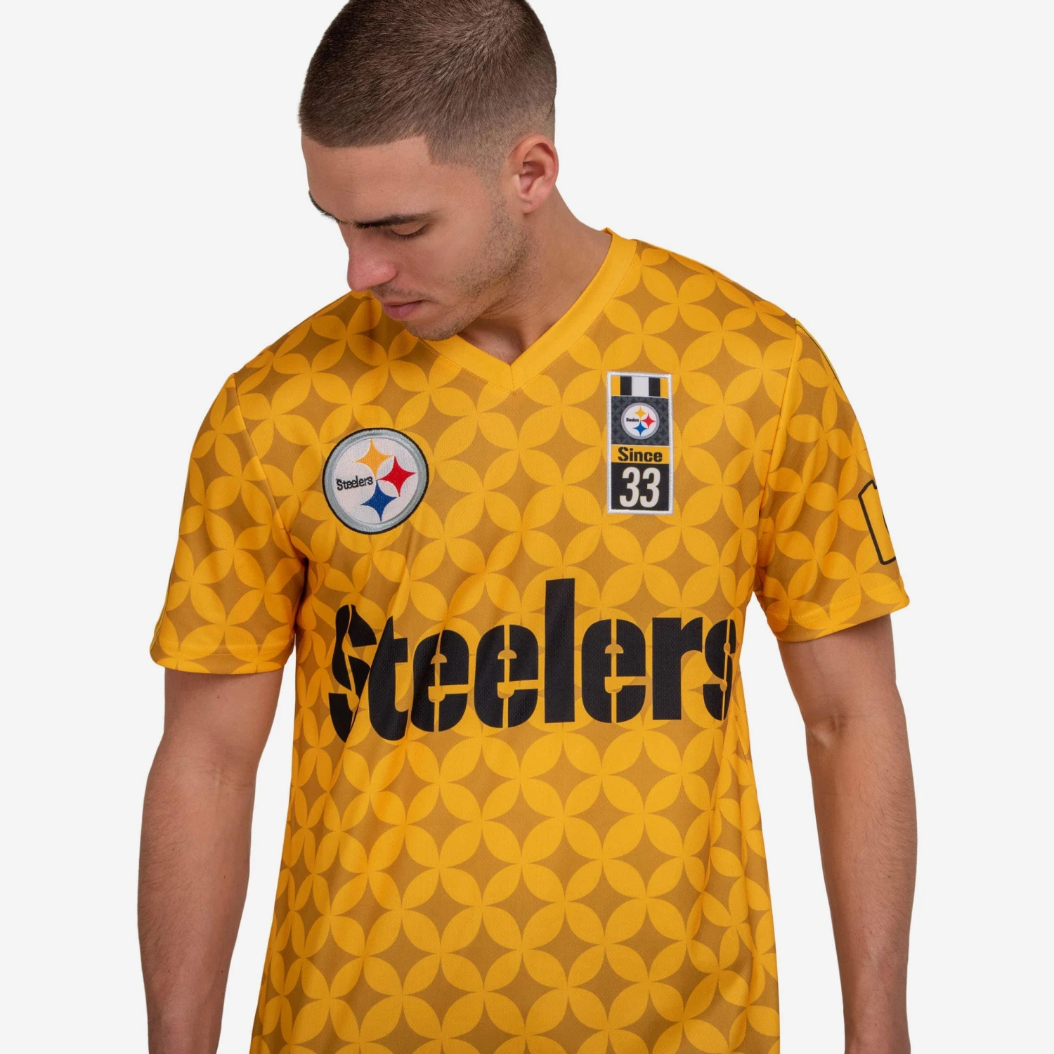 This Pittsburgh Steelers Short Sleeve Soccer Style Jersey isn’t just #goals. It’s #GOOOOOOOOOOOOOOALS! Show off your fan fashion sense and look as good as a game-winning penalty kick feels.
